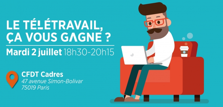Jeunes professionnels...lors de notre afterwork du mardi 2 juillet (18h30), parlez-nous de votre situation, de vos craintes et de vos souhaits en matière de télétravail. Confrontez vos points de vue avec la CFDT Cadres et entre pairs dans nos locaux : au 47 avenue Simon-Bolivar, 75019 Paris en présence de :