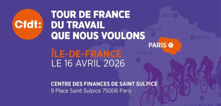 La 8e étape du Tour de France du travail CFDT se tiendra en Île-de-France le 16 avril 2026, à Paris, au Ministère du Travail (14 avenue Duquesne, Paris 7e).